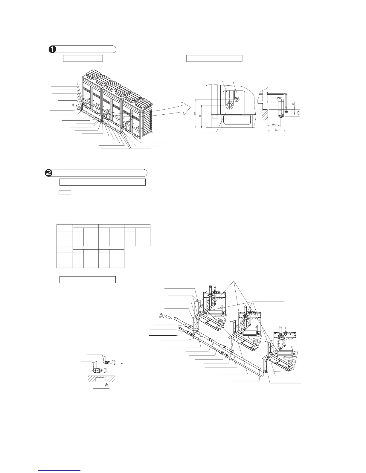 • The L dimensions of the gas pipe 1 to 5 in Table 7 show those when the field supply elbows have