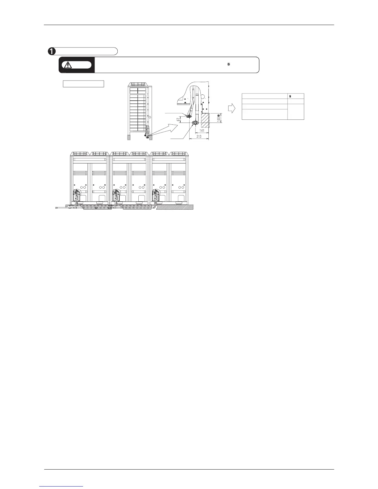 If a centralized drain pan kit and/or vibration proof base are used, the dimensions marked with “ ” in the figure below