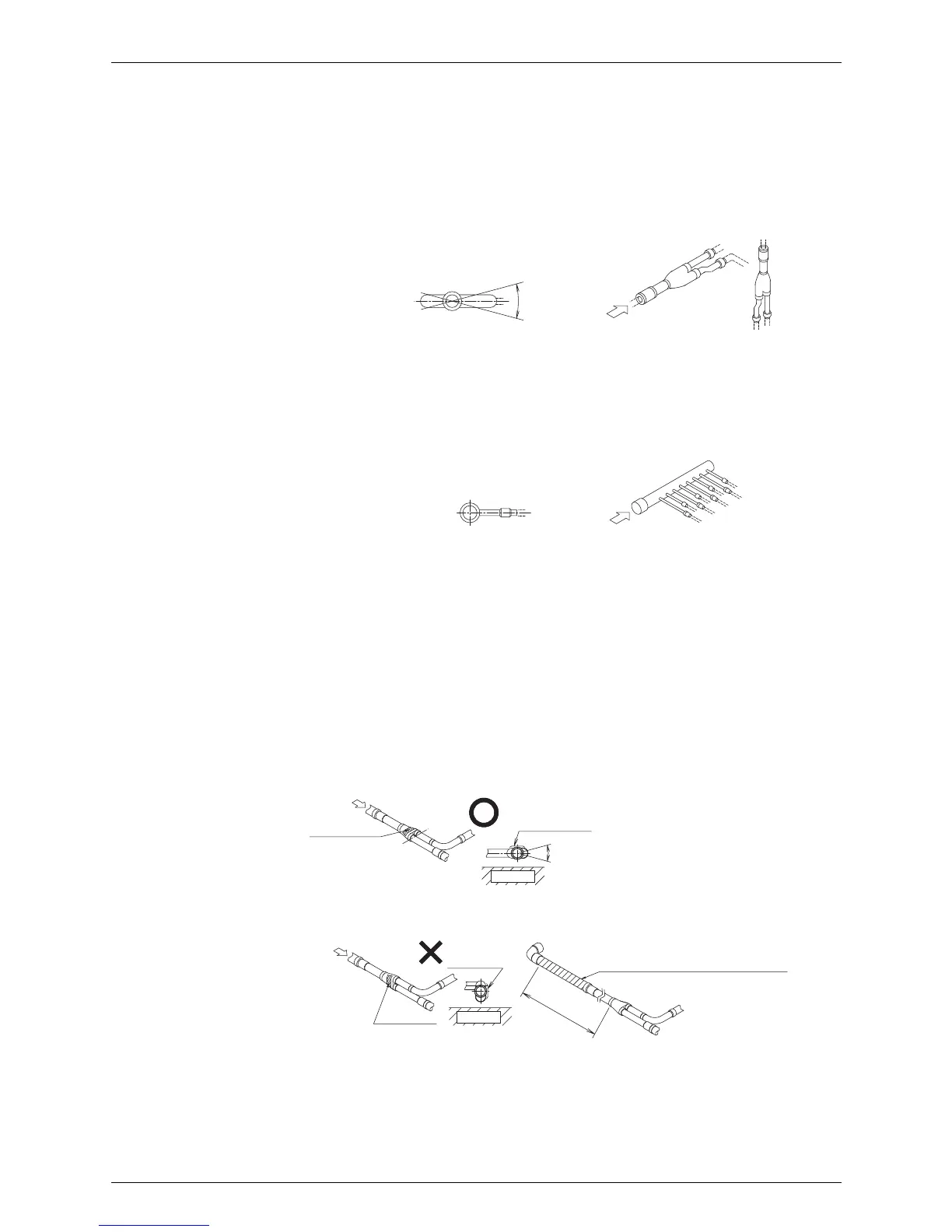 ! Maintain a straight portion of 500 mm or more until the split of the joint without wrapping