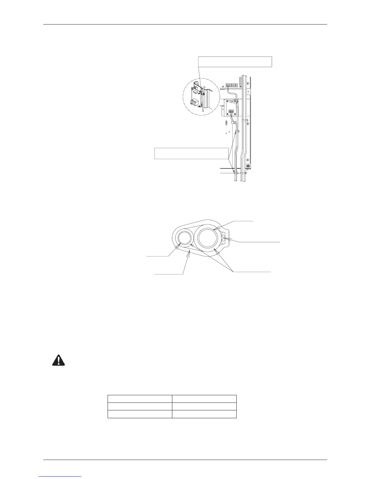 Caution: ! Do not connect the power wiring to terminals for the transmission wiring. Doing so would