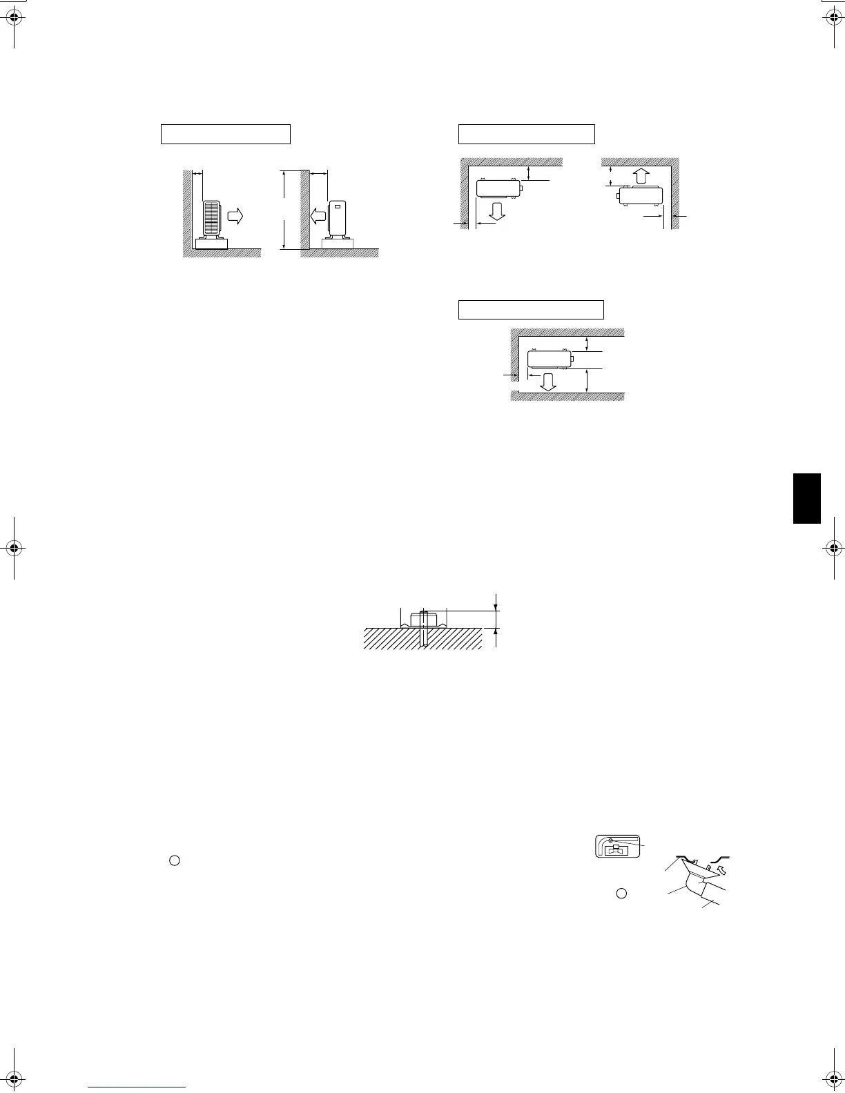 • Where a wall or other obstacle is in the path of outdoor unit’s intake or exhaust airflow, follow the installation guidelines below.