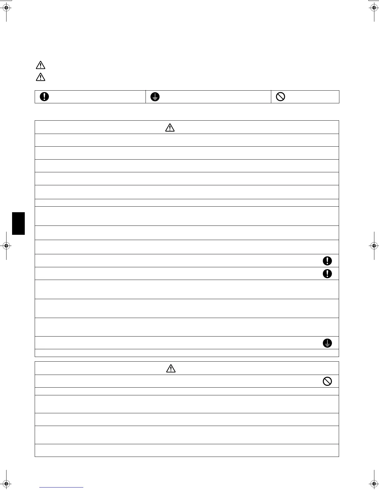 Be sure to observe this instruction. Be sure to establish an earth connection. Never attempt.