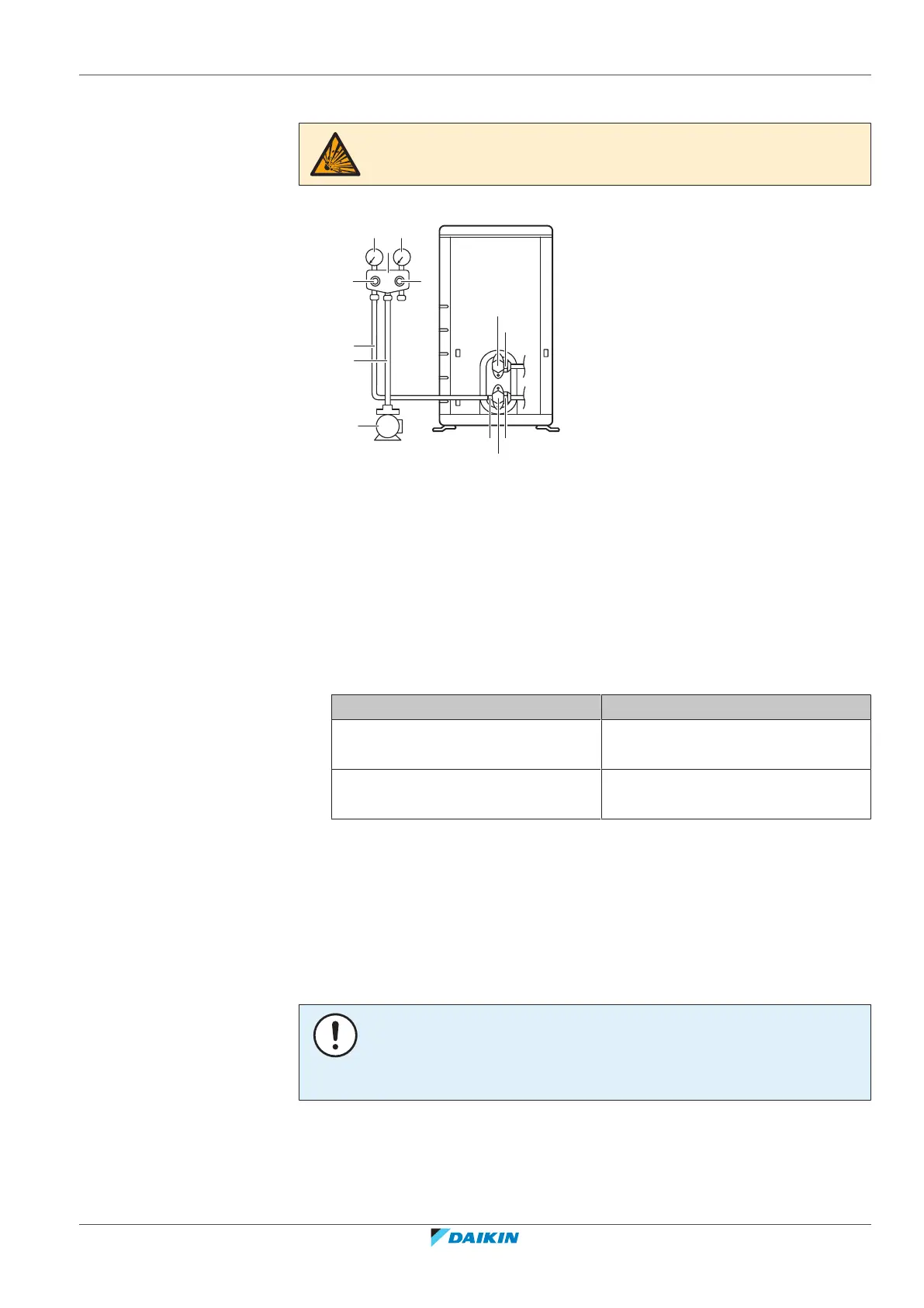 3 Vacuum the system for at least 2hours to a manifold pressure of −0.1 MPa