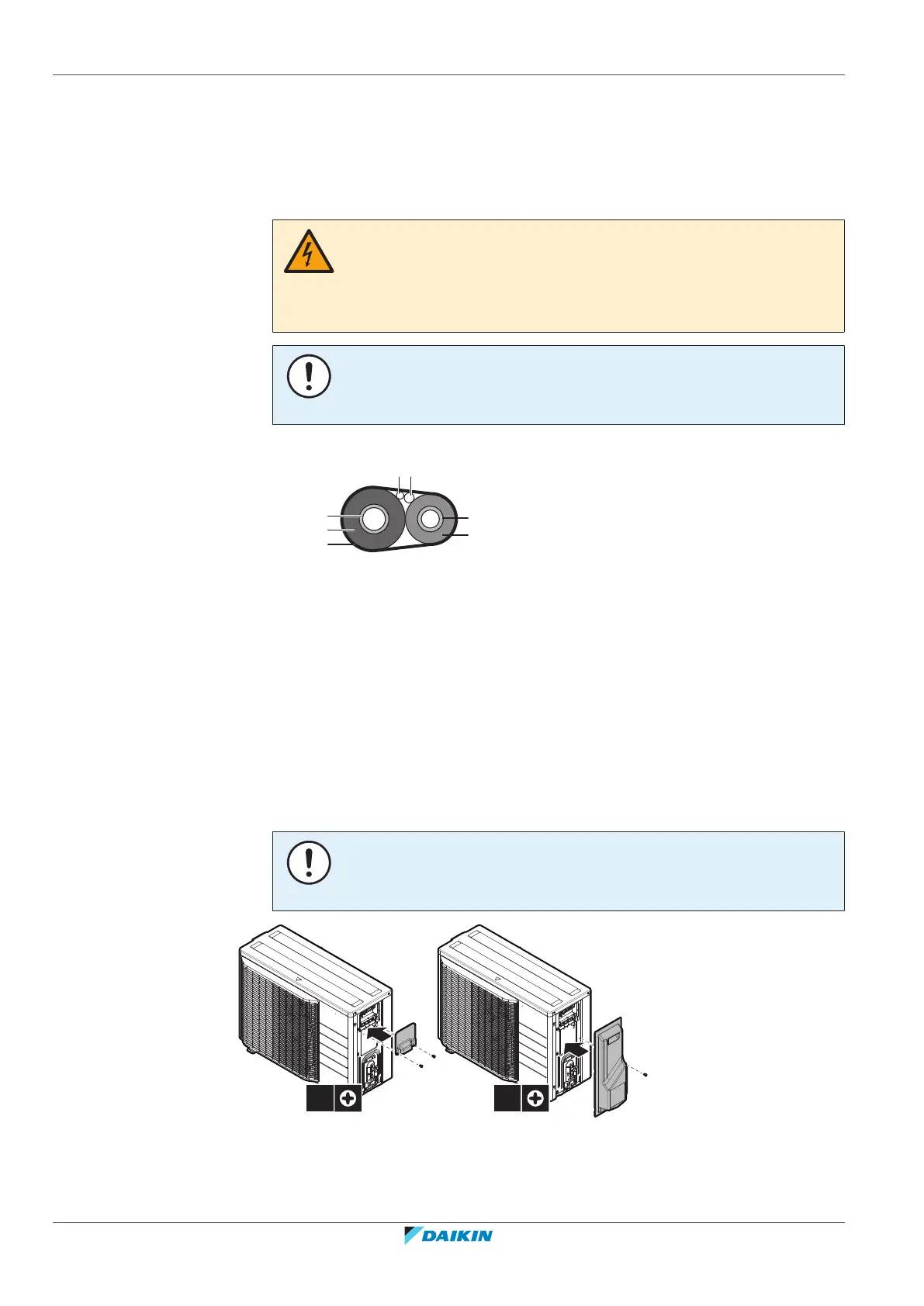1 Insulate and fix the refrigerant piping and cables as follows: