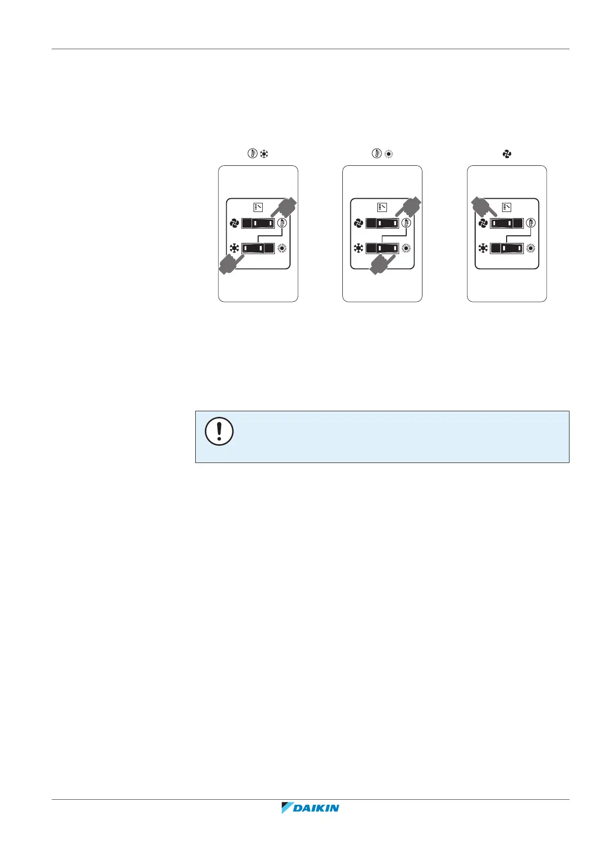 Note: In case a cool/heat changeover remote control switch is used, the position of