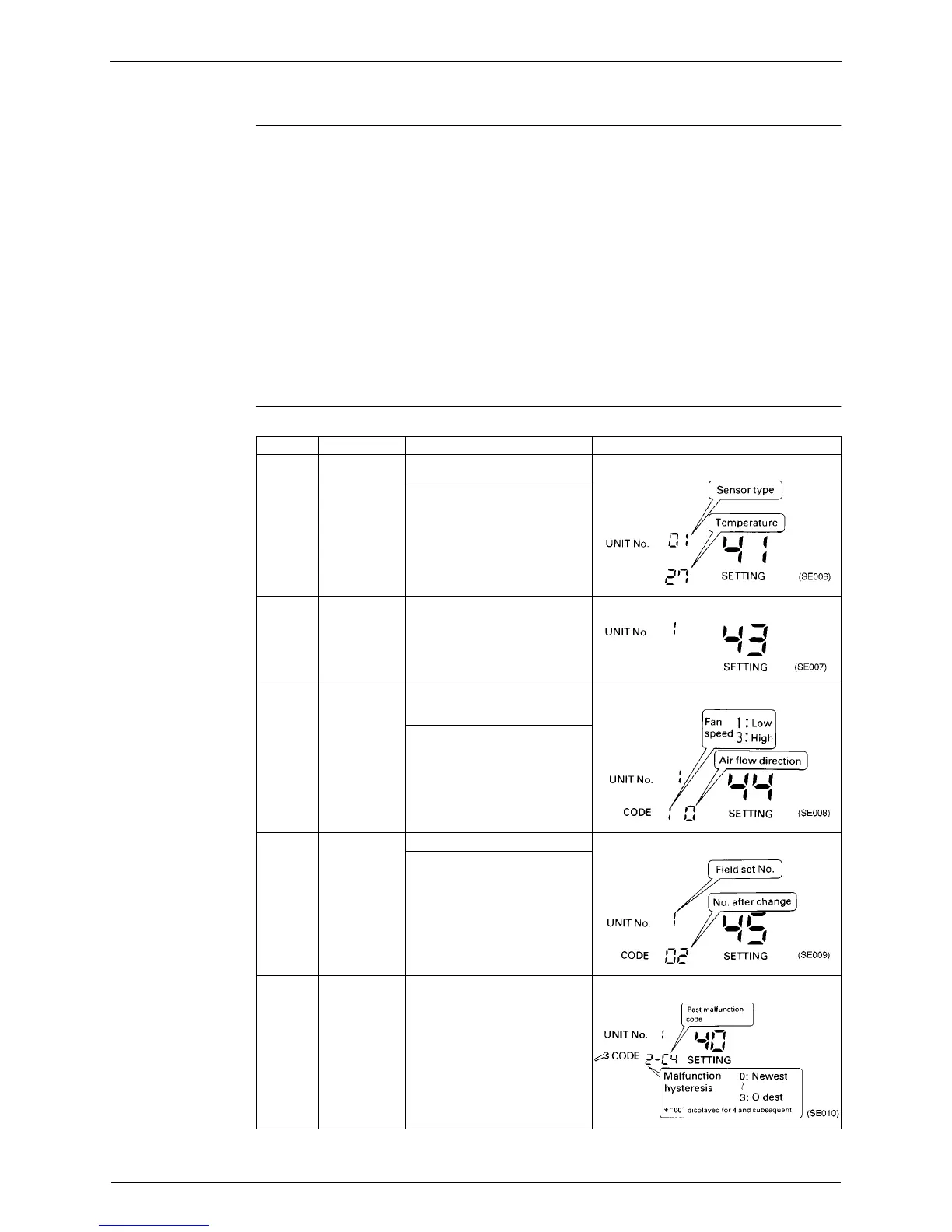 Mode No. Function Content and Operation Method Example of Remote Controller Display