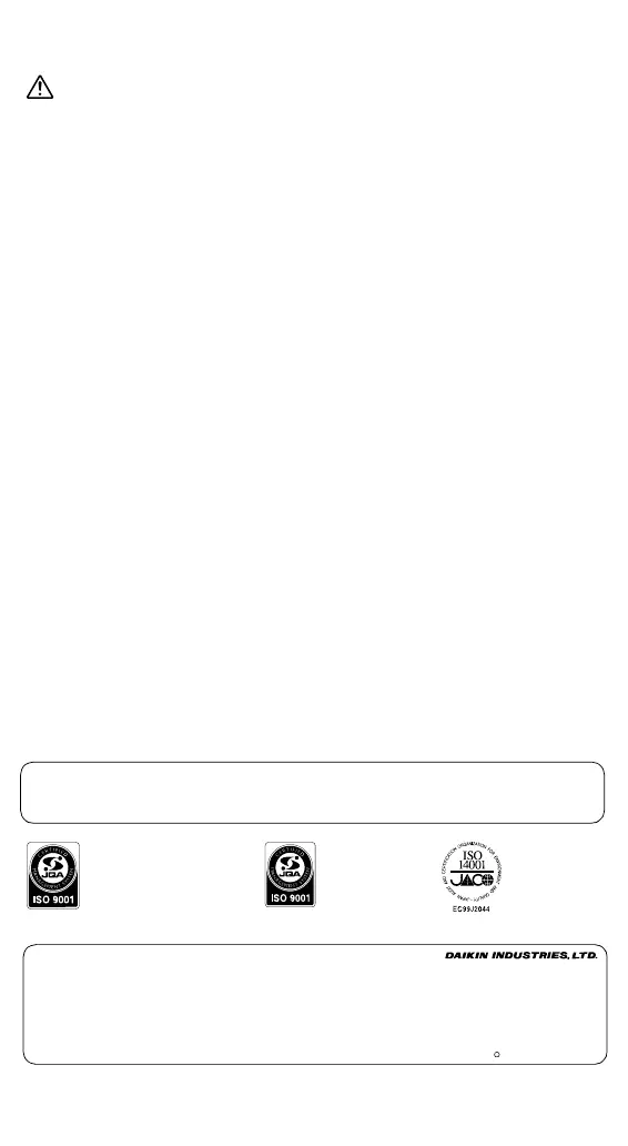 z Use only those parts and accessories supplied or specified by Daikin. Ask a qualified installer or