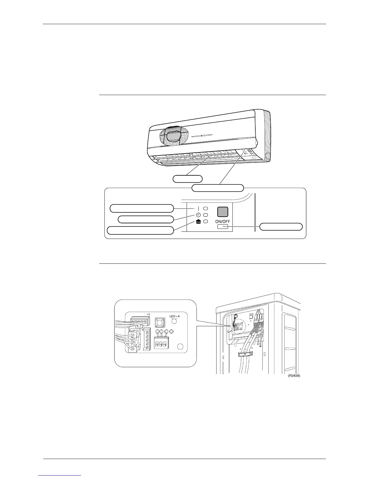 The outdoor unit has one green LED (LED A) on the PCB. The flashing green LED indicates