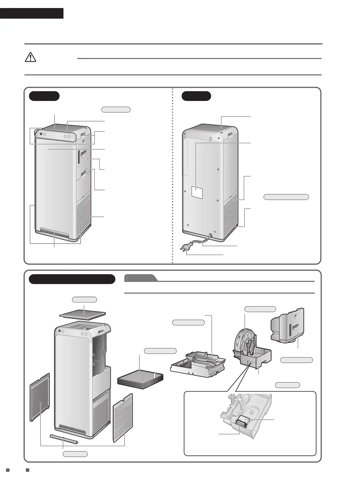 Do not lift up the unit holding the grip on the water tank or humidifying tray. (Injury may result from the unit falling)