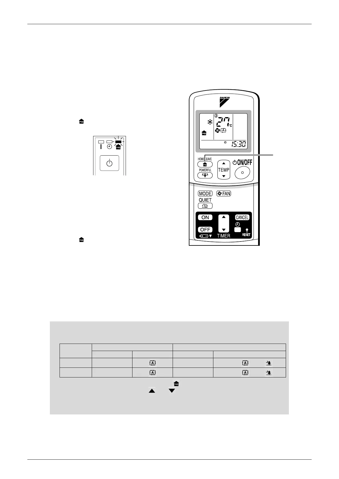 1. Press “HOME LEAVE button”. Make sure “ ” is displayed in the remote control display.