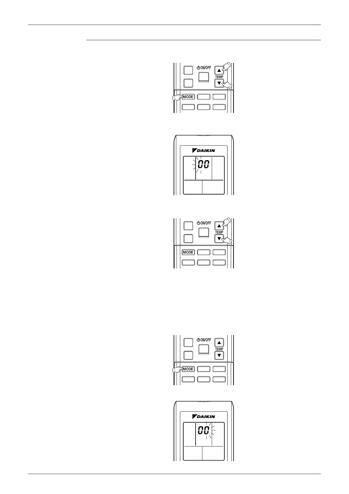 1. Press the 3 buttons (TEMP, TEMP, MODE) at the same time.