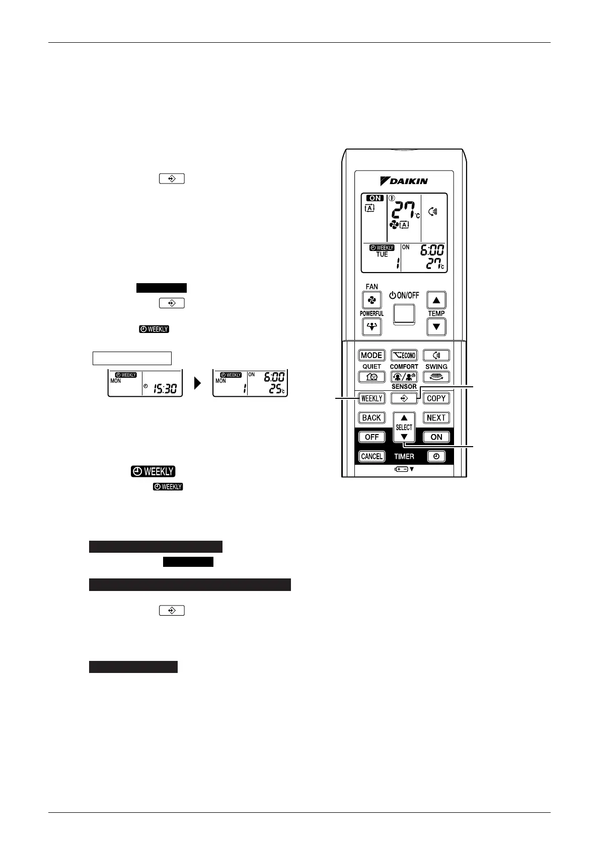 • To reactivate the WEEKLY TIMER operation, press the “WEEKLY button” again.