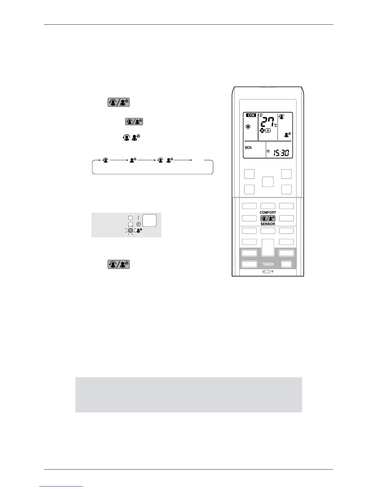 • If no presence detected in the room for 20 minutes, the energy saving operation will start.