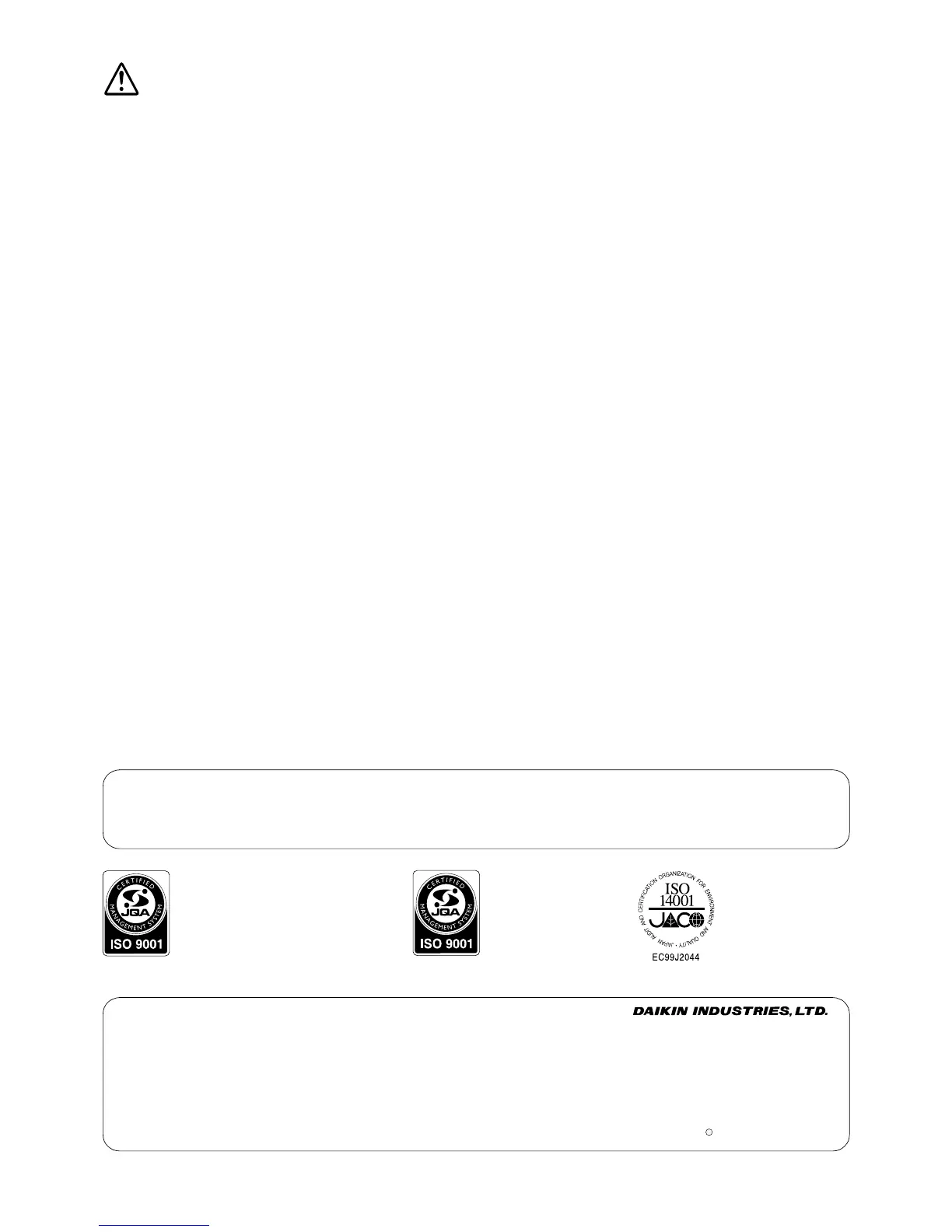 Use only those parts and accessories supplied or specified by Daikin. Ask a qualified installer or
