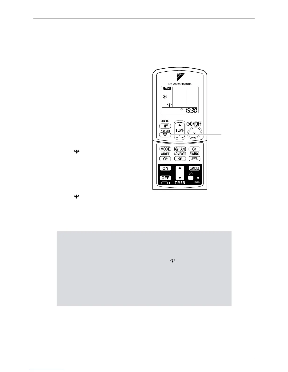 • POWERFUL Operation can only be set when the unit is running. Pressing the operation