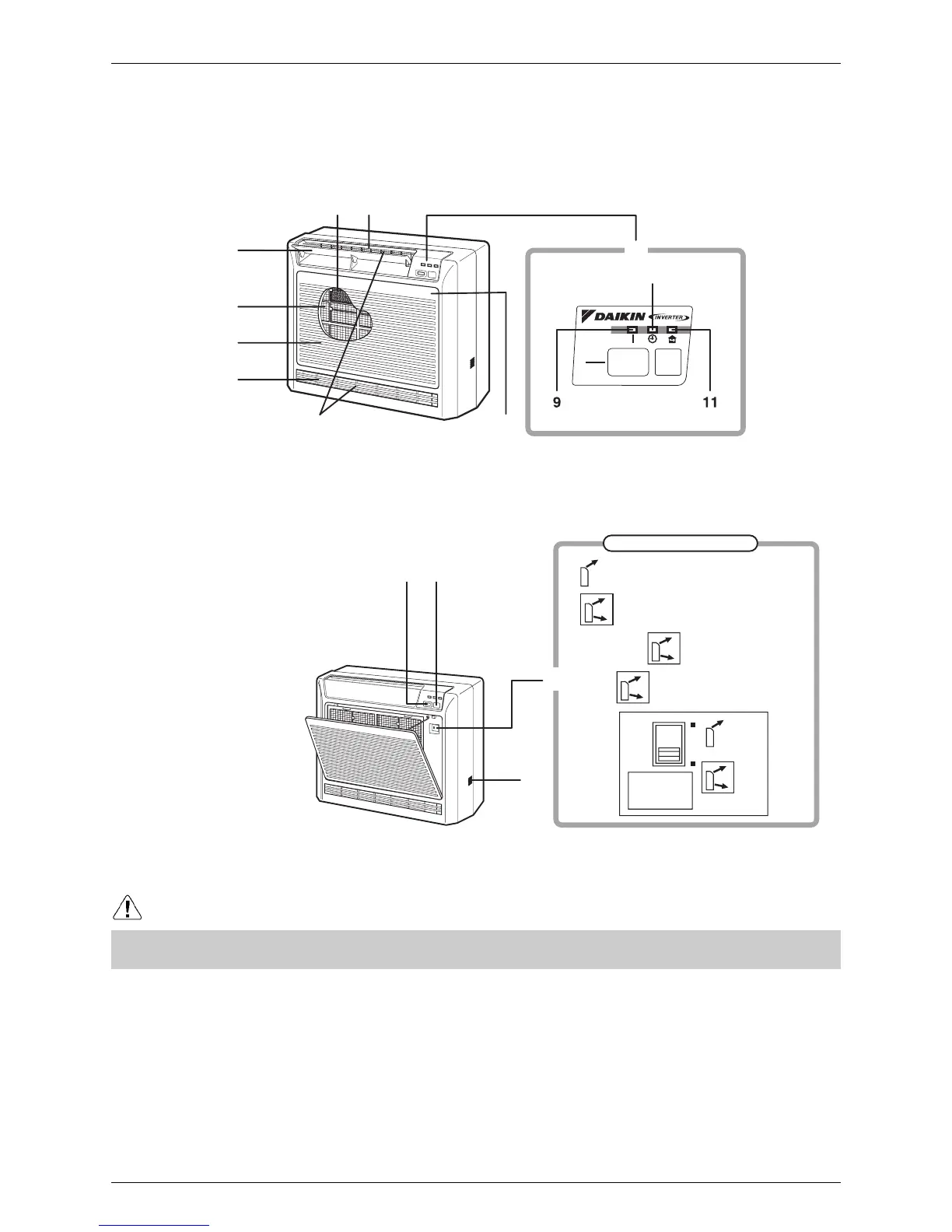 • Before opening the front grille, be sure to stop the operation and turn the breaker OFF.