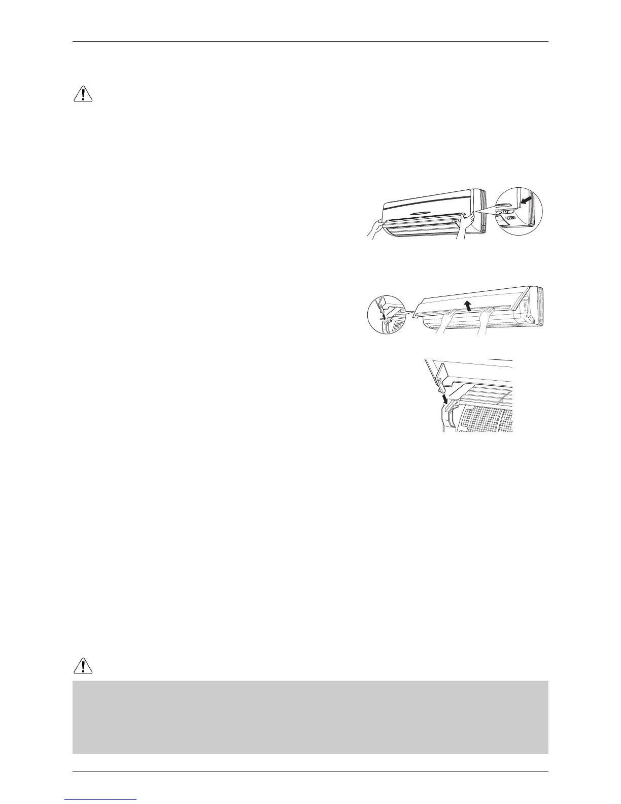 • When removing or attaching the front panel, support the panel securely with hand to prevent it from falling.