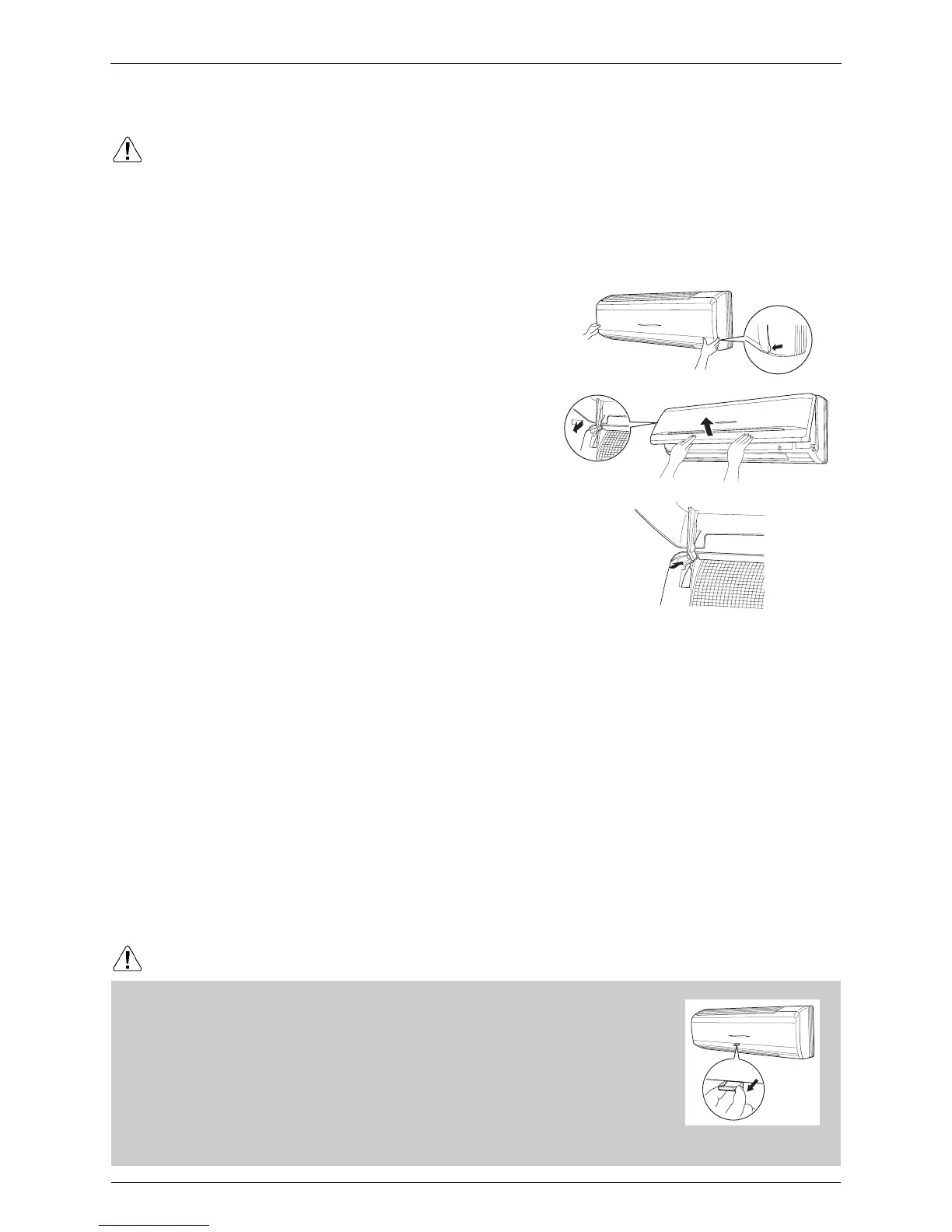 • Don’t touch the metal parts of the indoor unit. If you touch those parts, this may cause