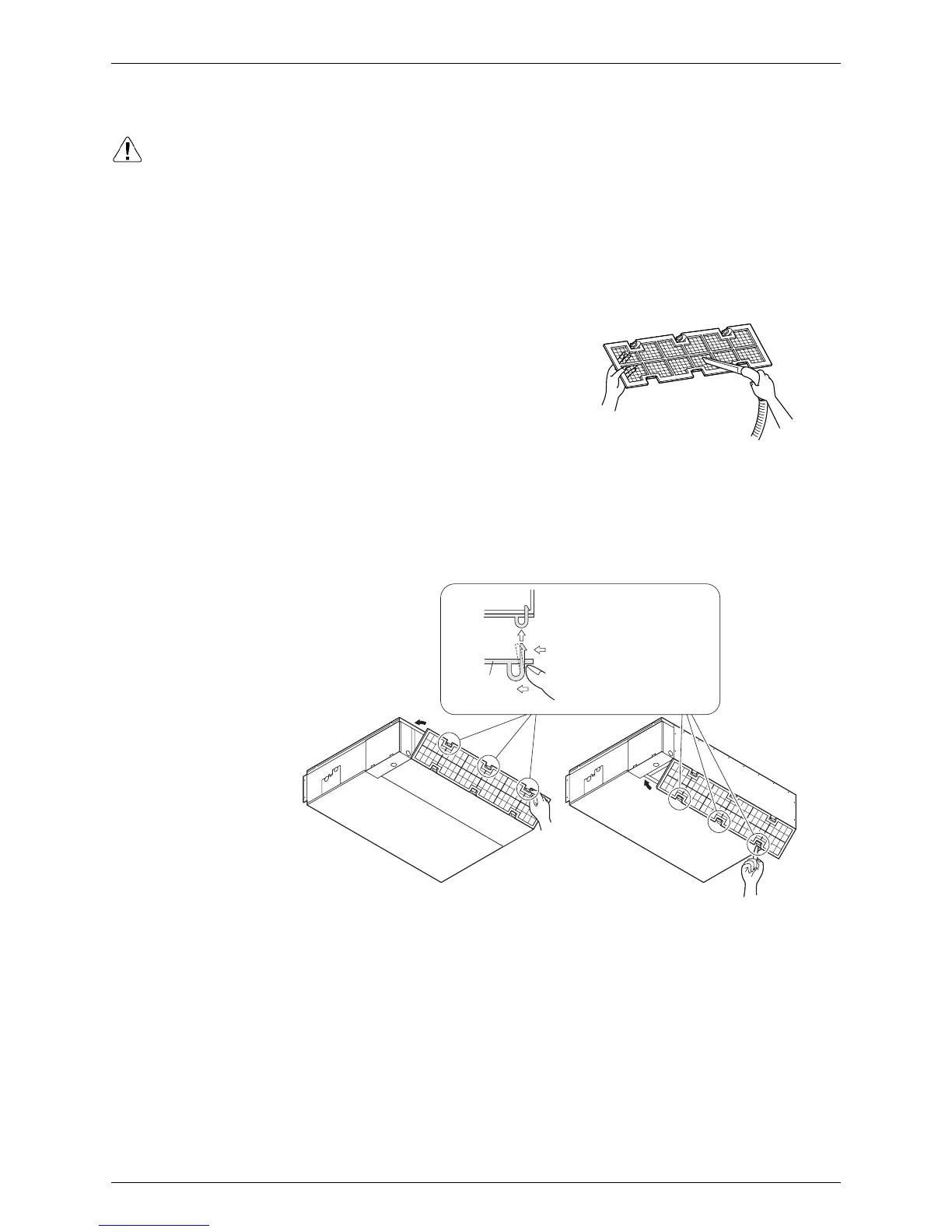 Hook the filter behind the flap situated at the middle of the unit and push the other side gently