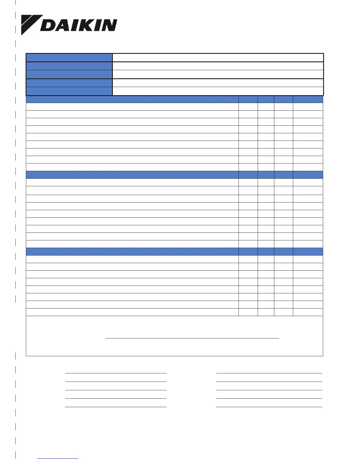Must be completed, signed, and provided to Daikin Applied at least 2 weeks prior to requested start date.