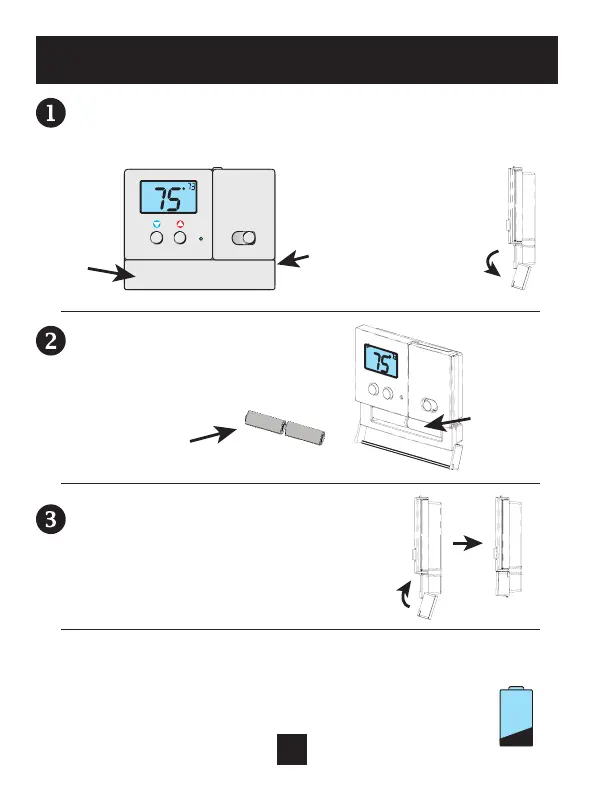 the bottom front of the thermostat (fig. 1). To open the battery slot,
