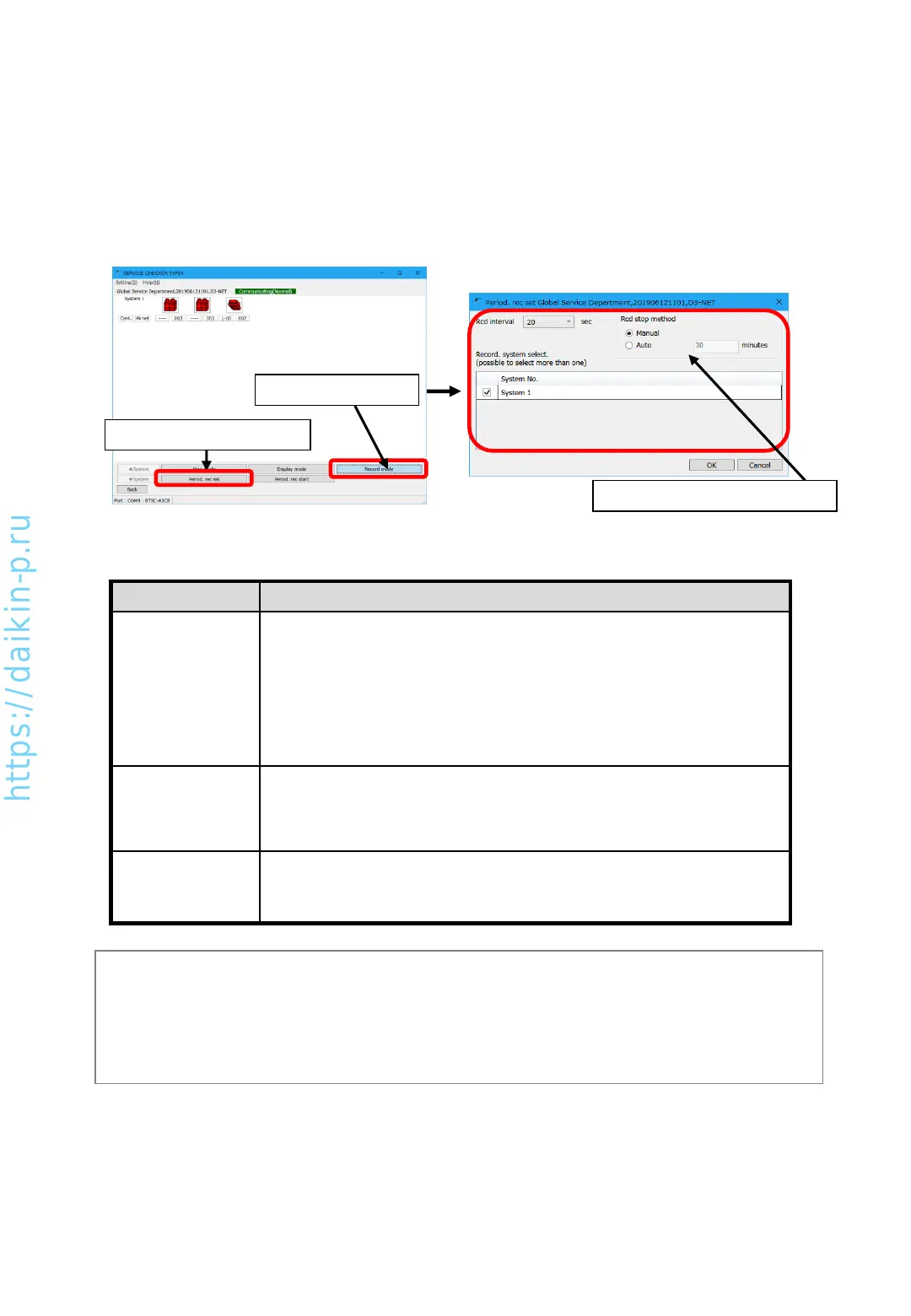 (1) Set [1. Record interval], [2. Record stop method], [3. Record system select]