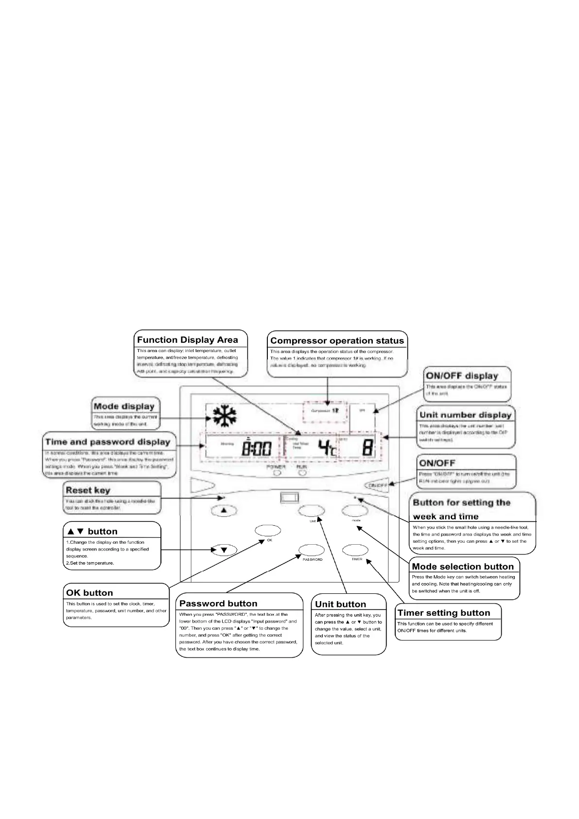MC305 is a wall-mounted LCD controller which directly controls air conditioners through keys on its panel.