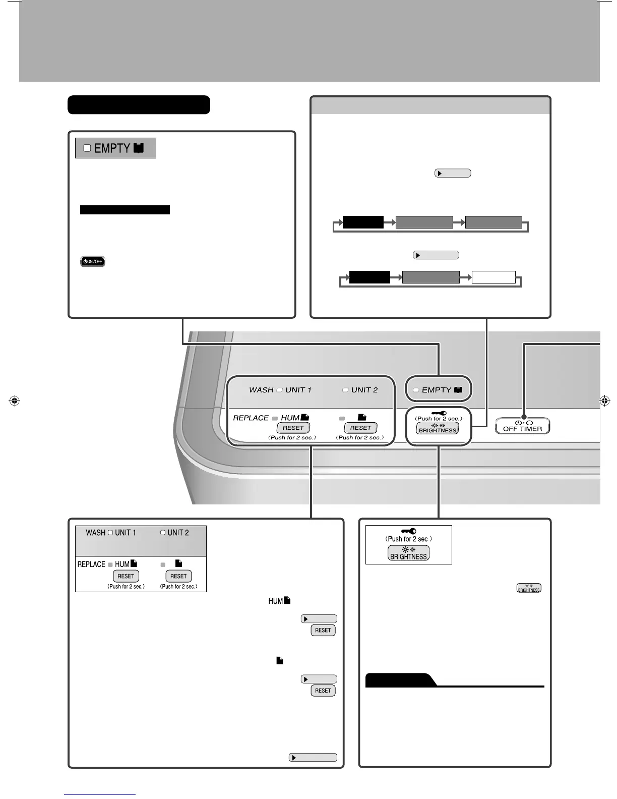 При каждом нажатии данной кнопки яркость индикаторов панели