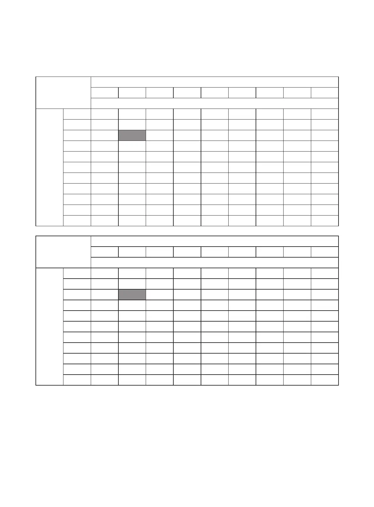 Cooling capacity and cooling power input performance table