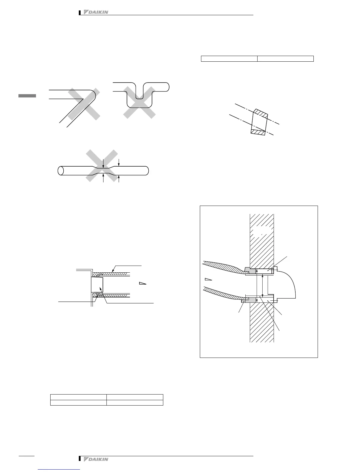 • Do not install ducts as shown below.