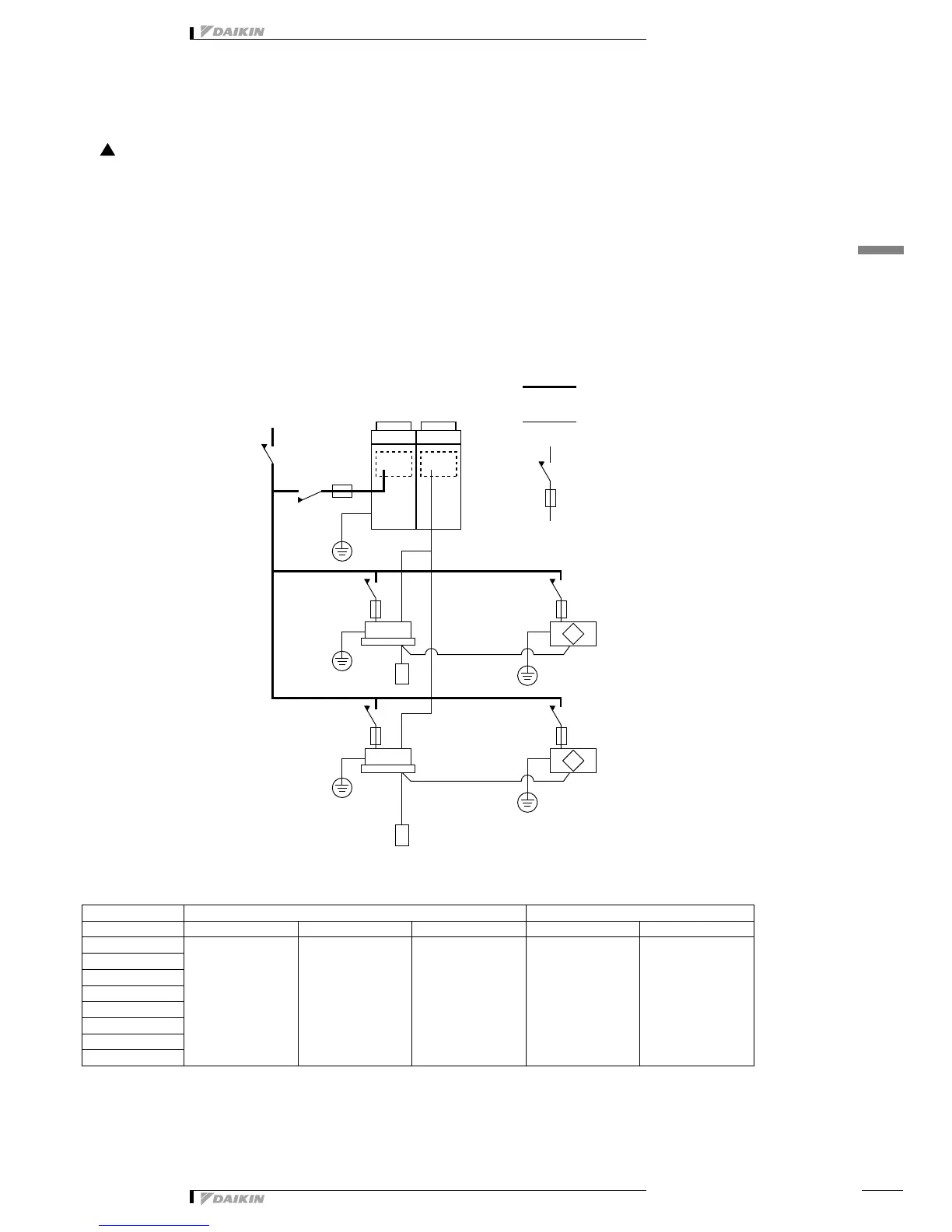 • A single switch can be used to supply power to units on the same system. However, branch switches and branch circuit breakers must be