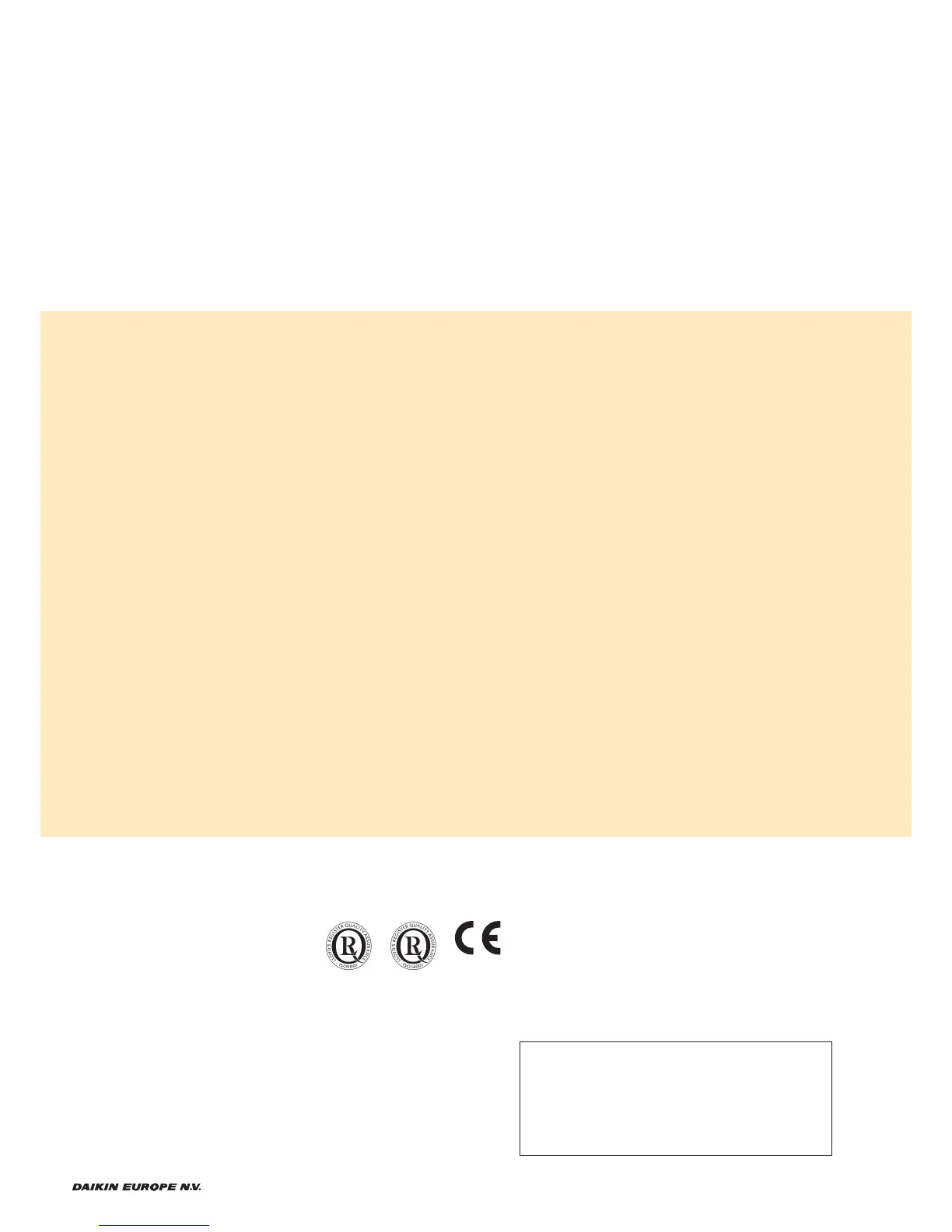 Naamloze Vennootschap - Zandvoordestraat 300, B-8400 Oostende - Belgium - www.daikin.eu - BE 0412 120 336 - RPR Oostende