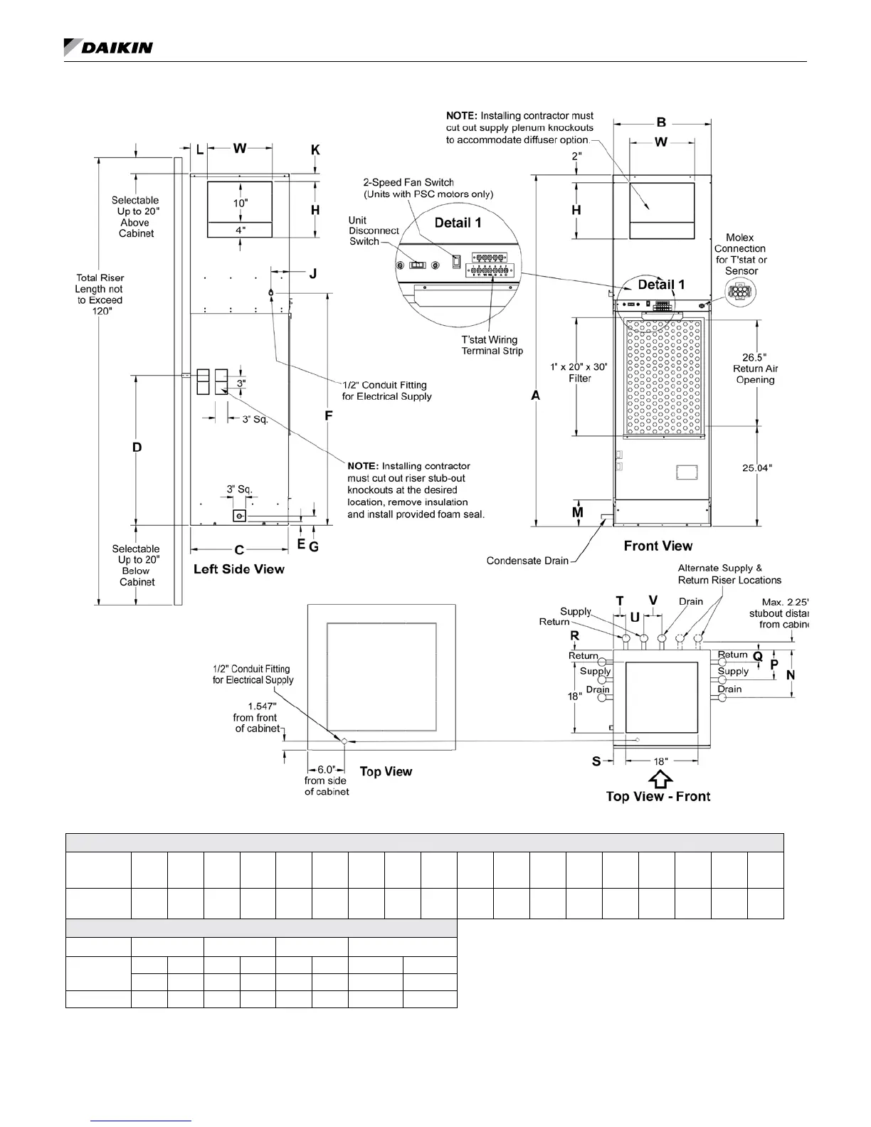 Unit Size 021–036 (24" ˣ 24") Cabinet (Dimensions in inches)