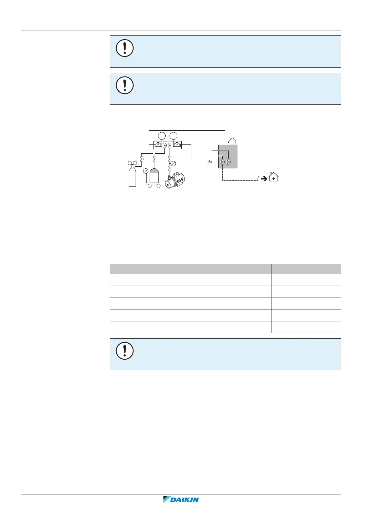 1 Evacuate the system from the liquid and gas piping to a gauge pressure of