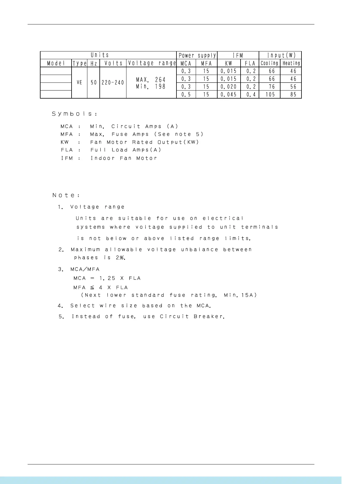 Daikin VRV III - Electric Characteristics