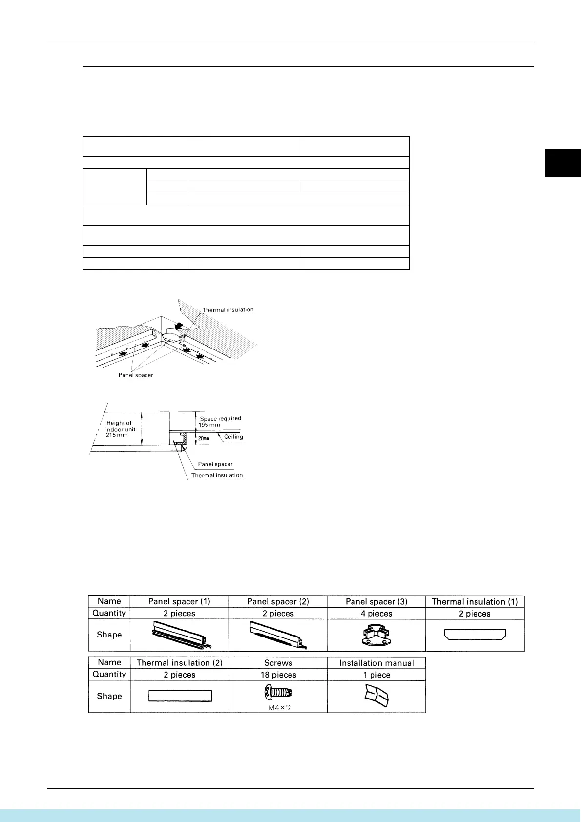 If the space above the ceiling is not available for more than 220 mm, use the panel spacer, which enables to install
