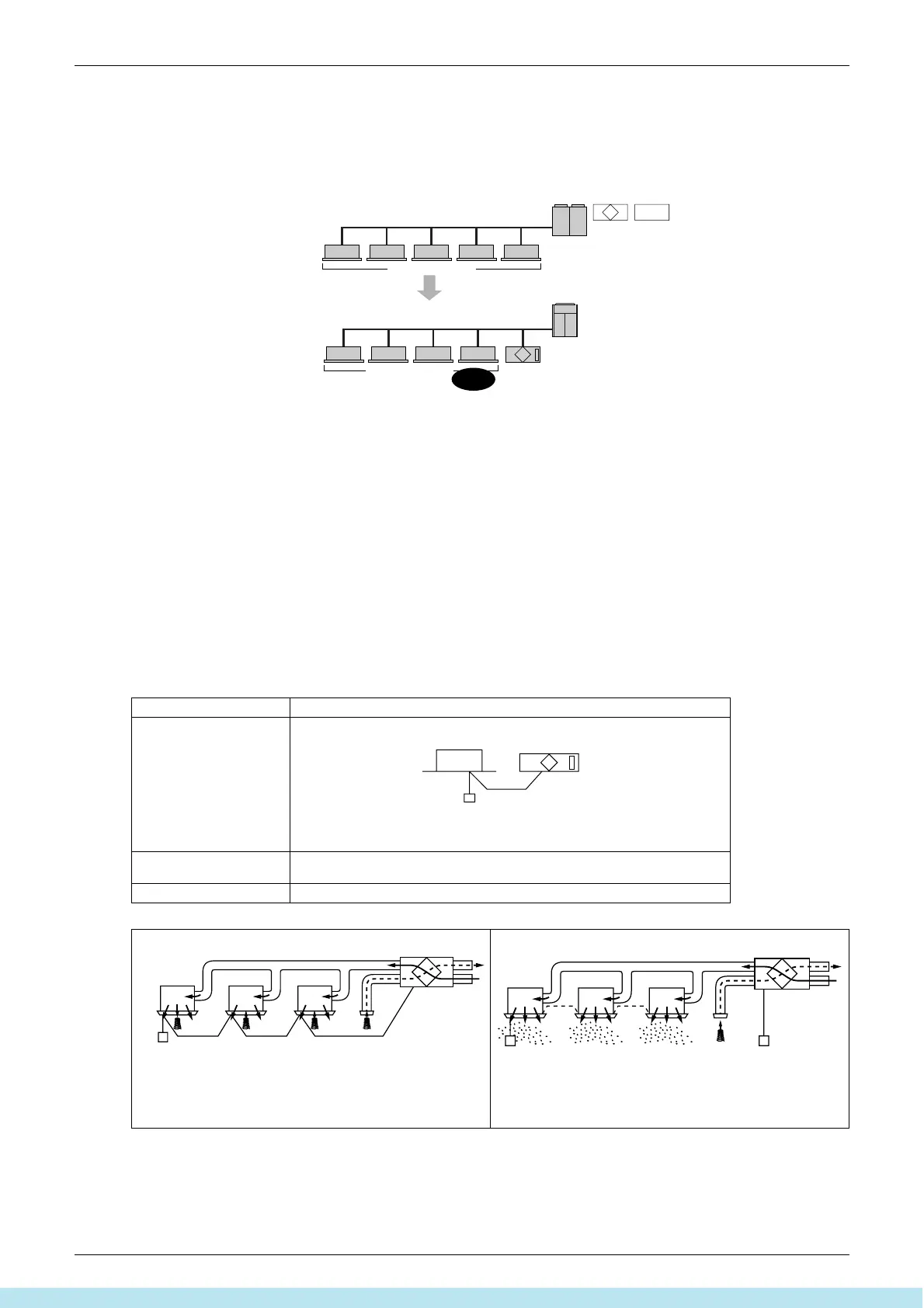 2) Do not connect the duct with discharge air side of indoor units.