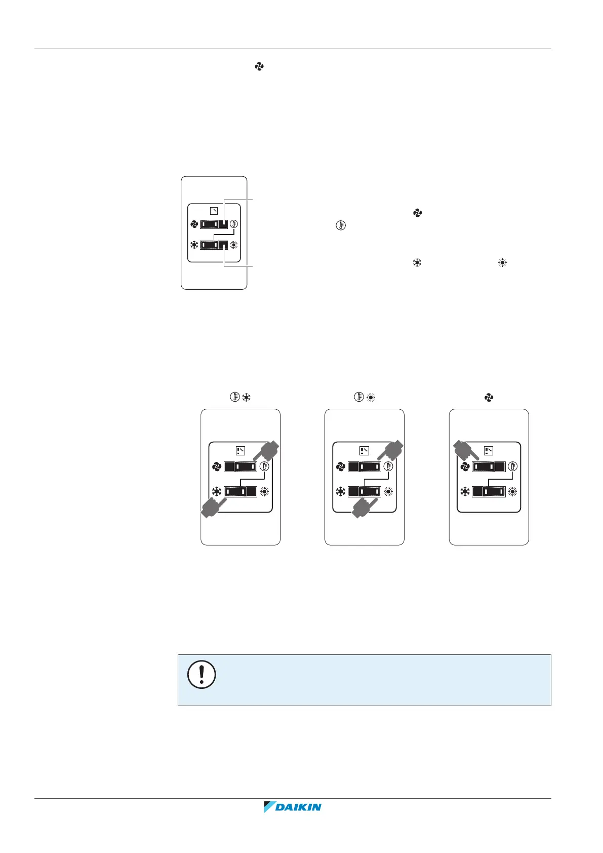 Note: In case a cool/heat changeover remote control switch is used, the position of