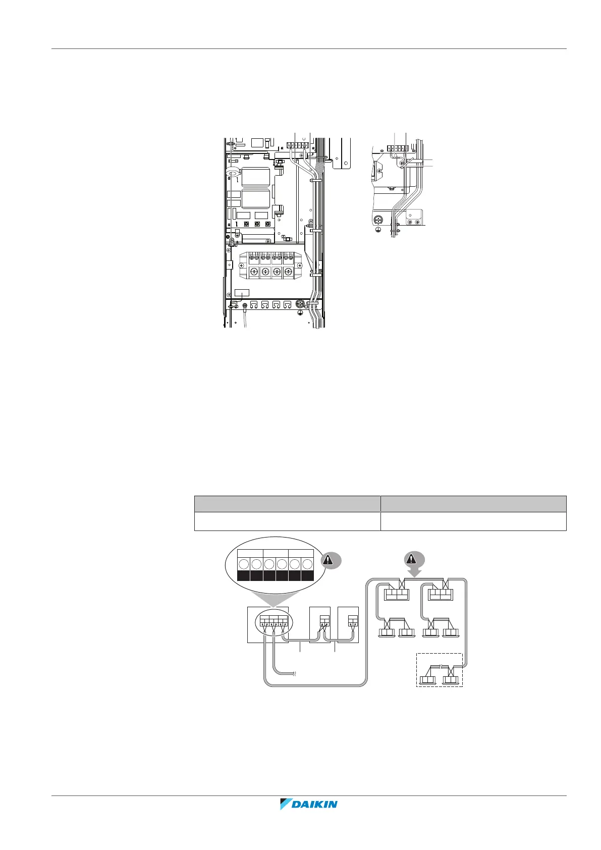 The wiring from the indoor units must be connected to the F1/F2 (In‑Out)