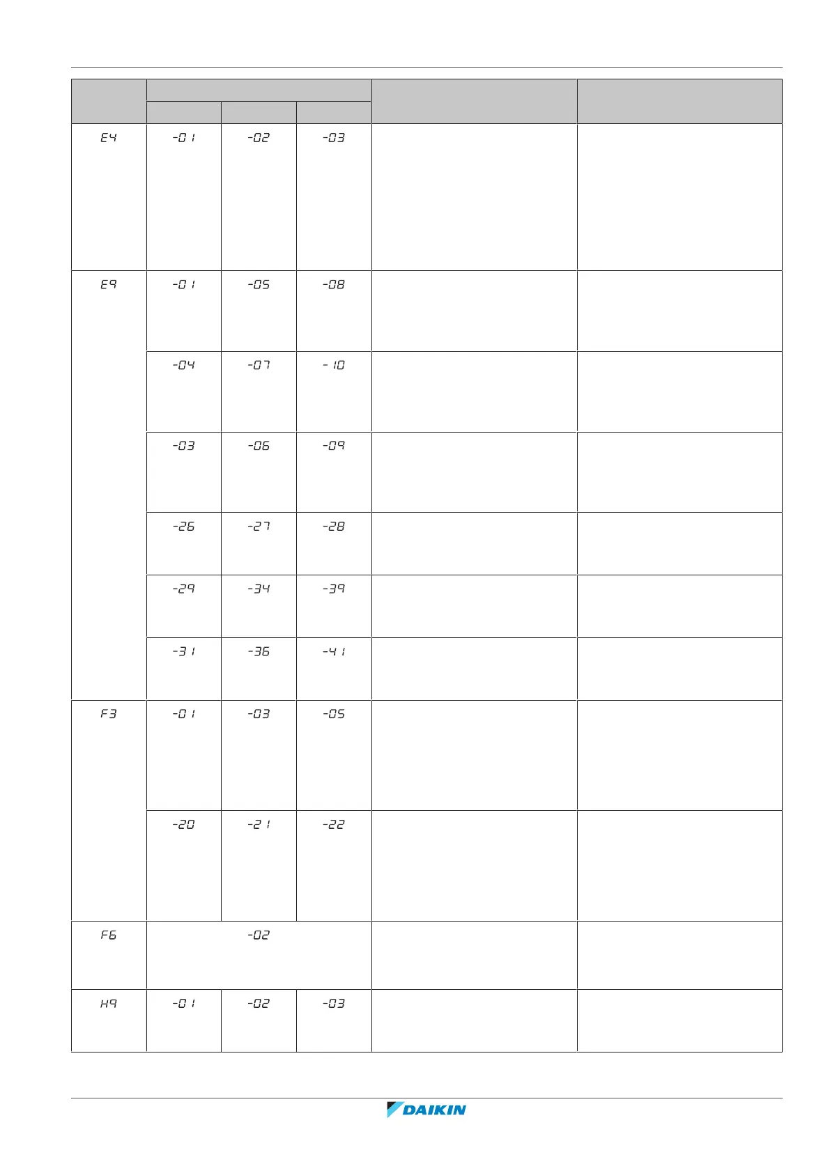 Main code Sub code Cause Solution