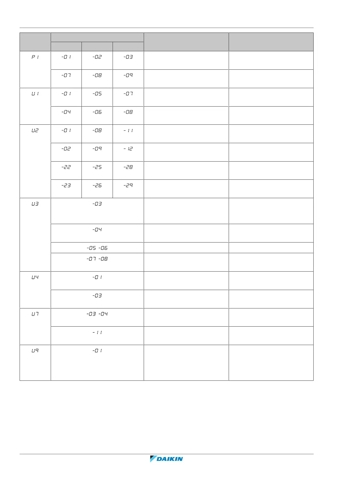 Main code Sub code Cause Solution