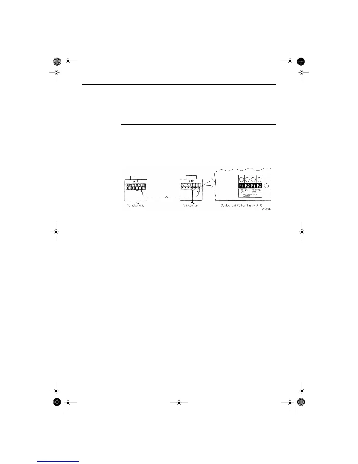 Connect transmission wiring to terminals F1 and F2 (outdoor - outdoor) on the outdoor unit PC board