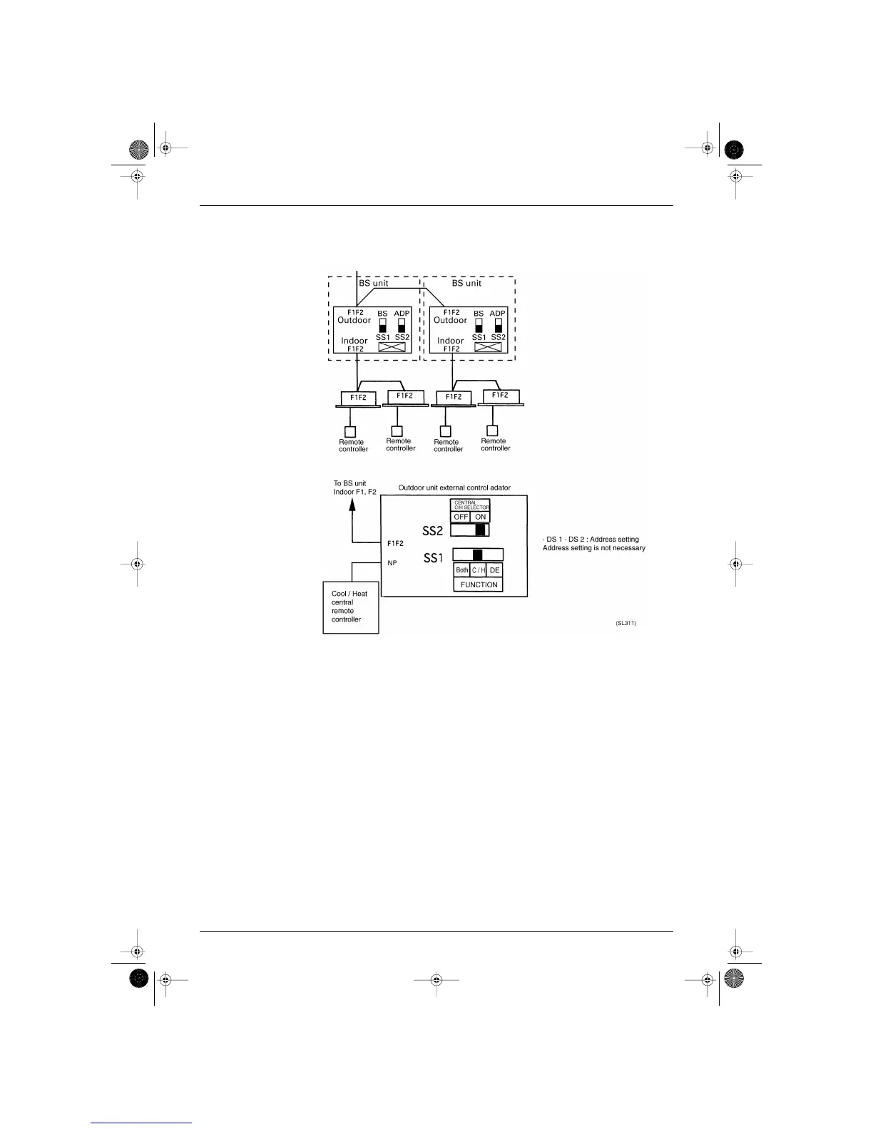 Install the "External control adaptor for outdoor unit" in BS unit.