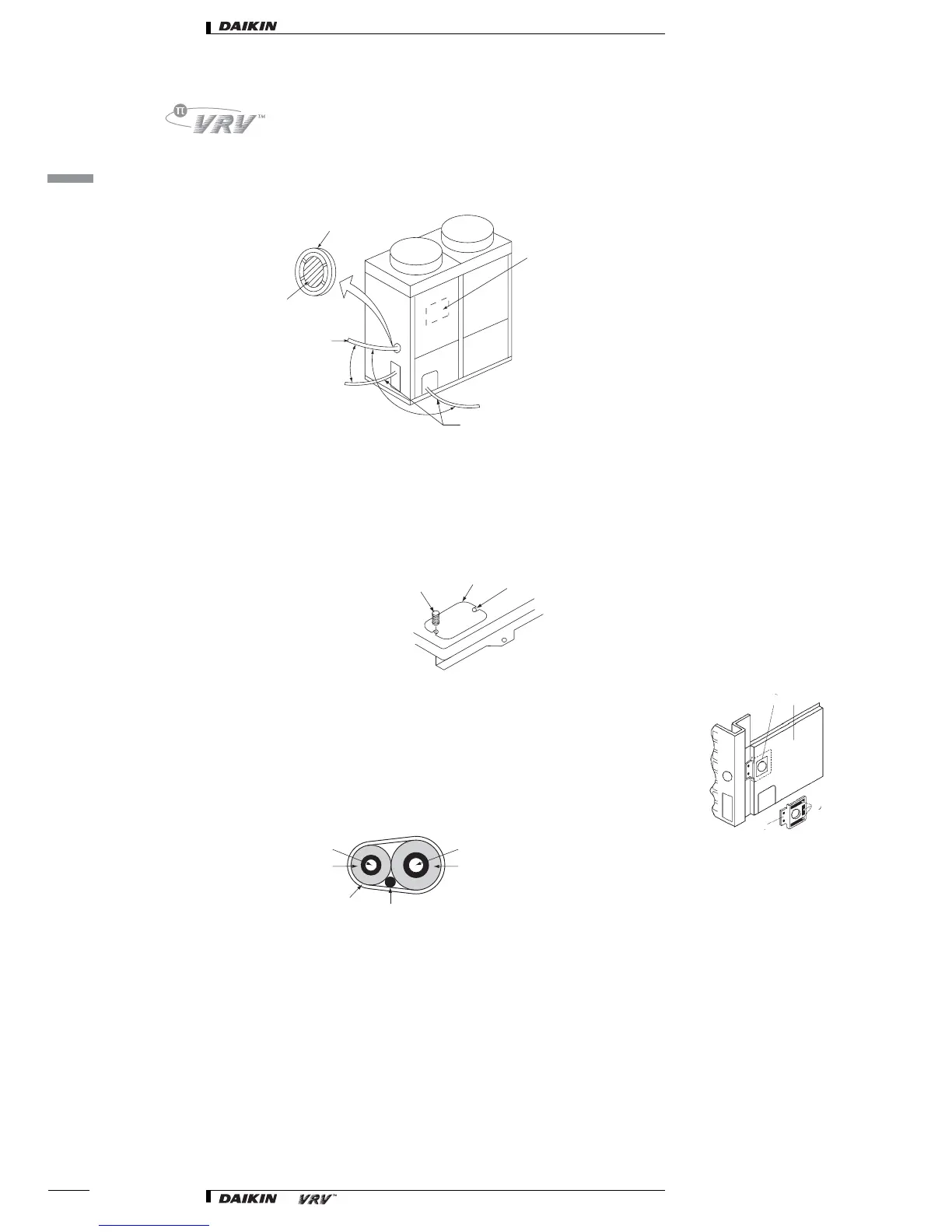hole on the right side plate or from the front position of the main unit (After binding it to the piping with