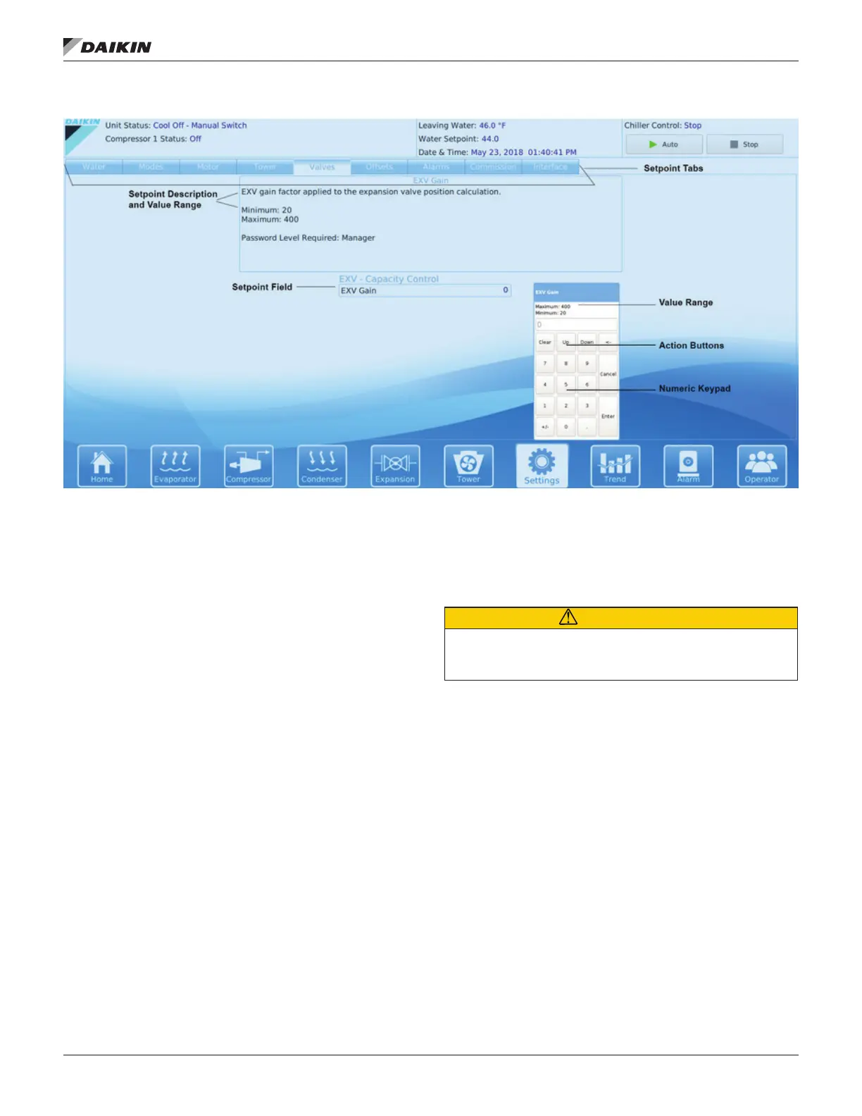 setpoint value. A keypad prompt will appear to enter a