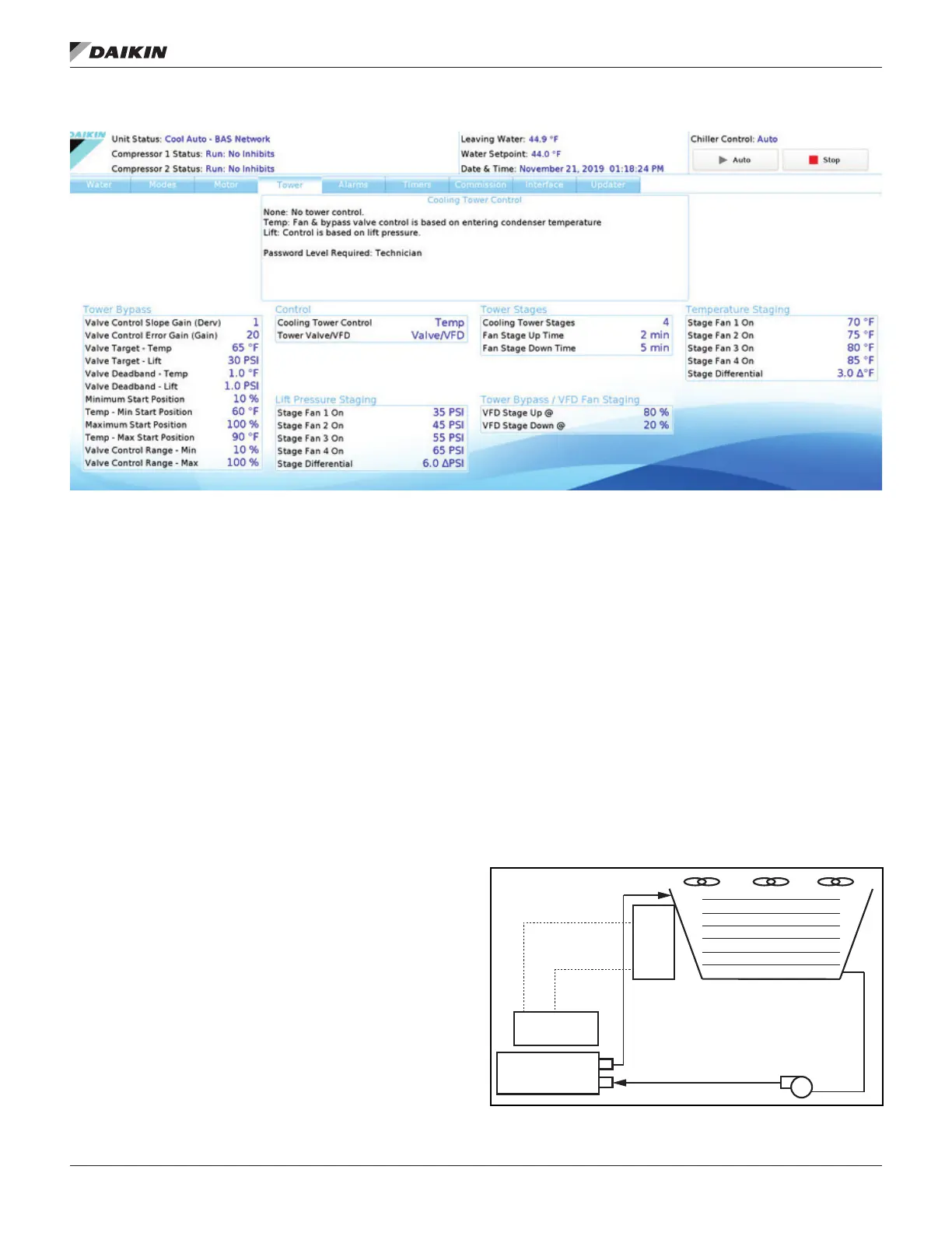 page 49) using the Tower Valve/Fan VFD Strategy setting.
