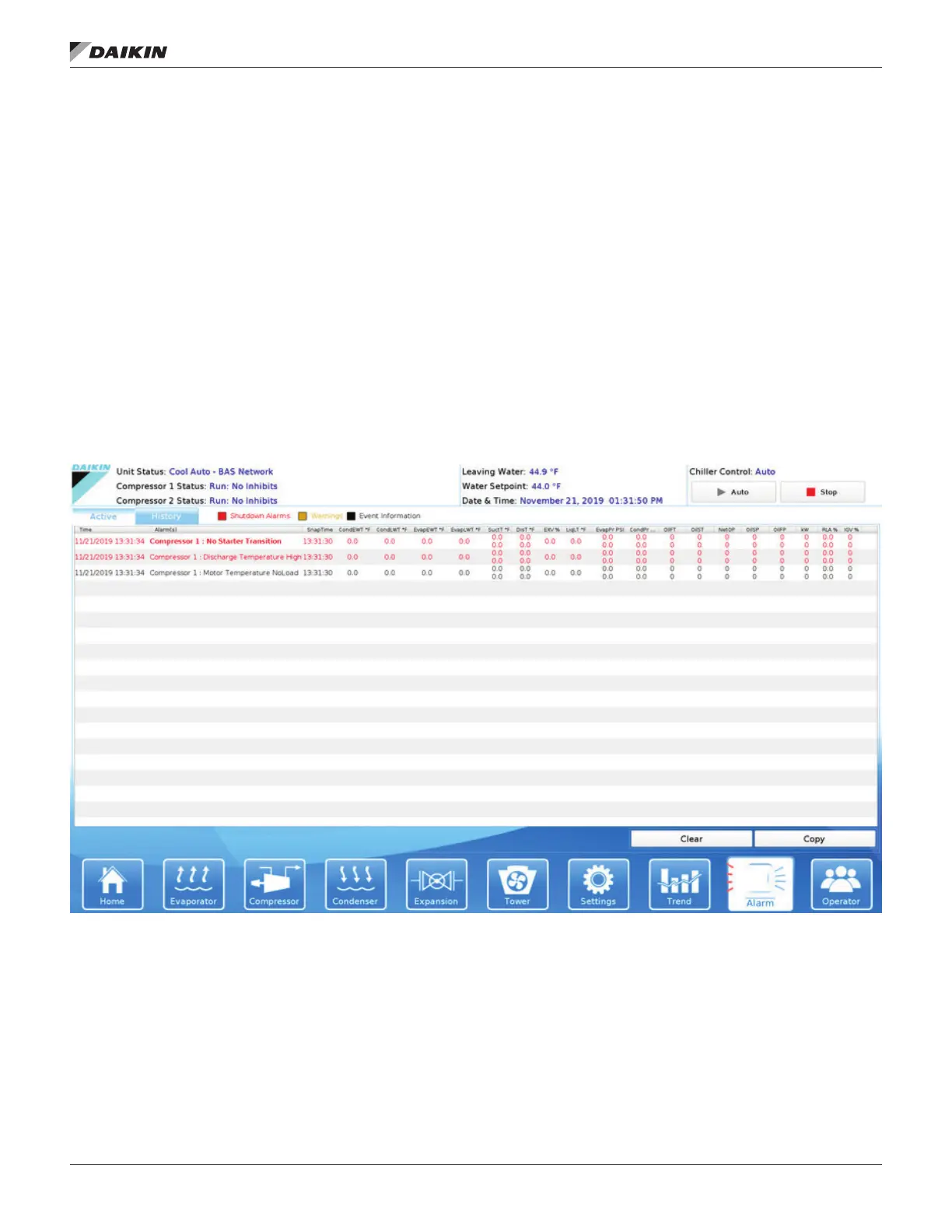manually cleared at the HMI or via the BAS. Critical Alarms