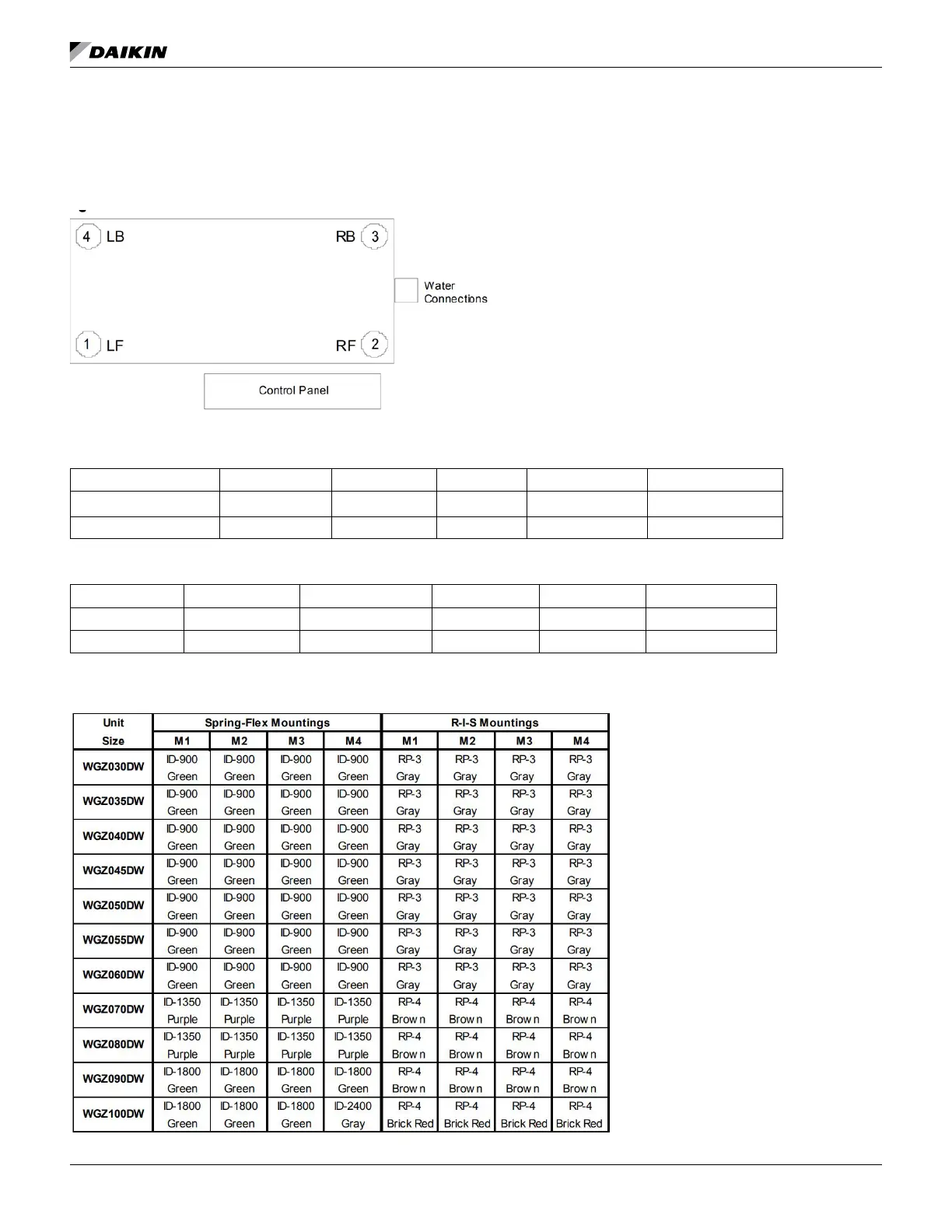 WGZ-DW Packaged Chiller Isolator Kit Part Numbers