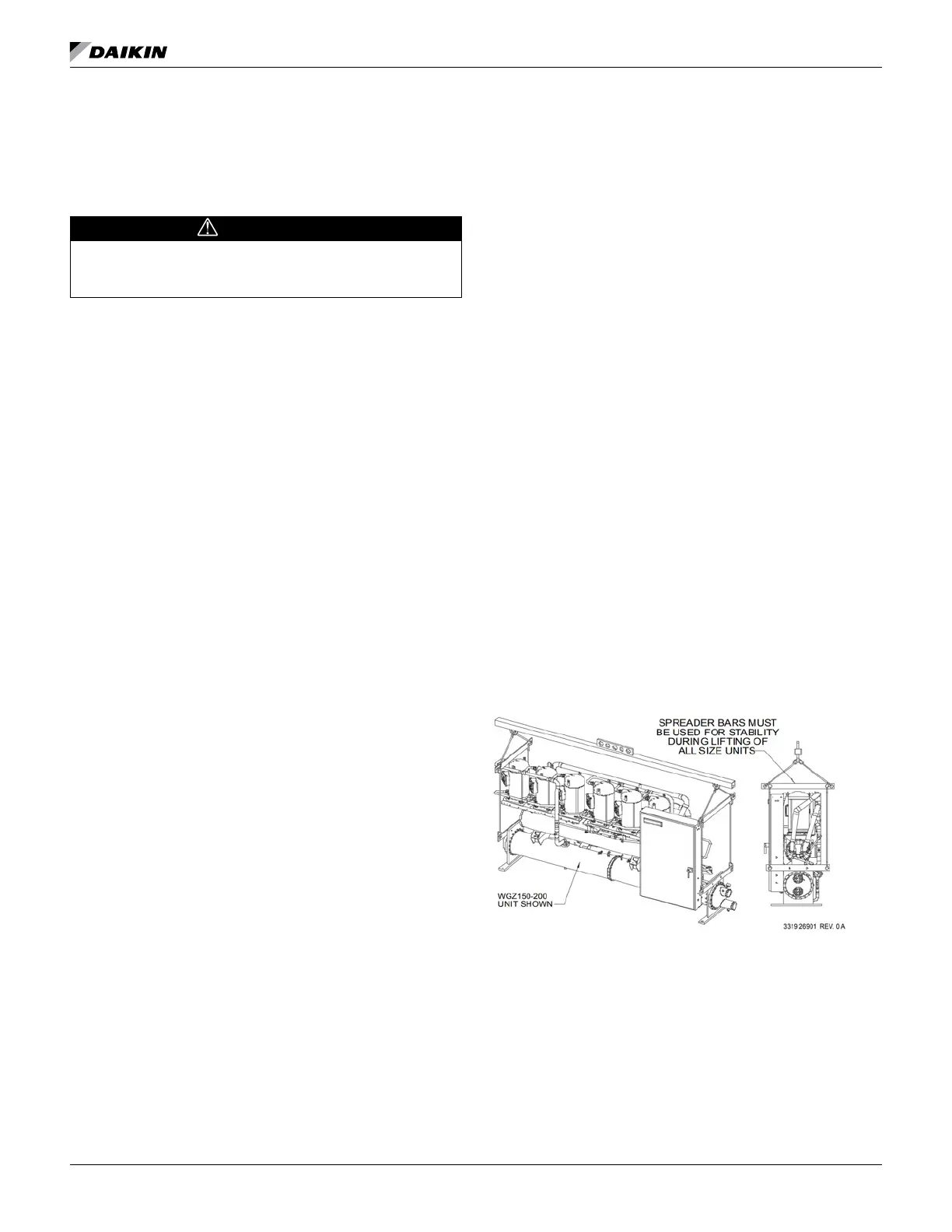 the truck or rollers. Improper rigging, lifting, or moving of a unit