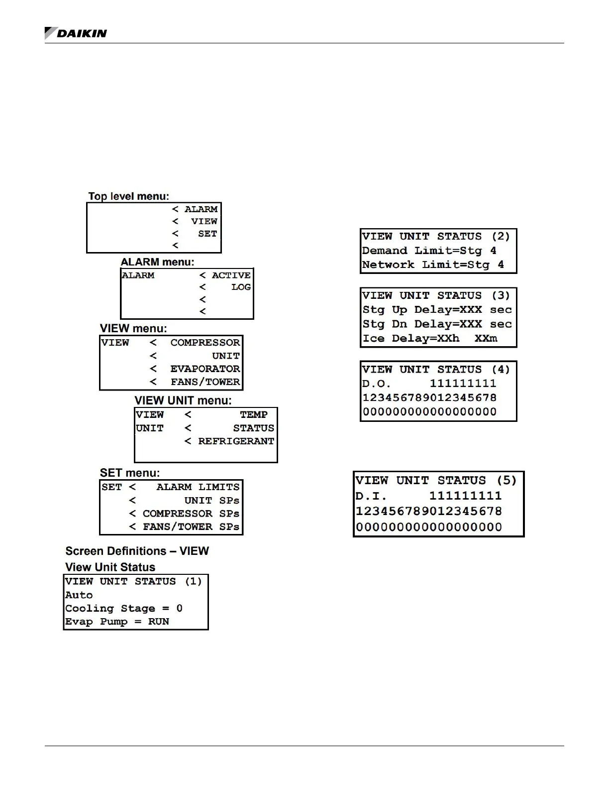 Unit states can be OFF, COOL, GYLCOL, ICE, or ALARM as